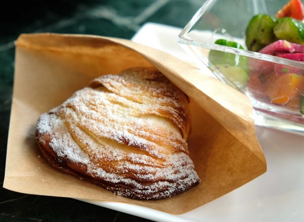 貝殻の形をした「スフォリアテッラ」はシェフの菊池が生地のサクサク食感にこだわり、何度も試作を重ねて完成した自信作。中にはオレンジの香りが爽やかなリコッタチーズを使ったクリームが入っています。