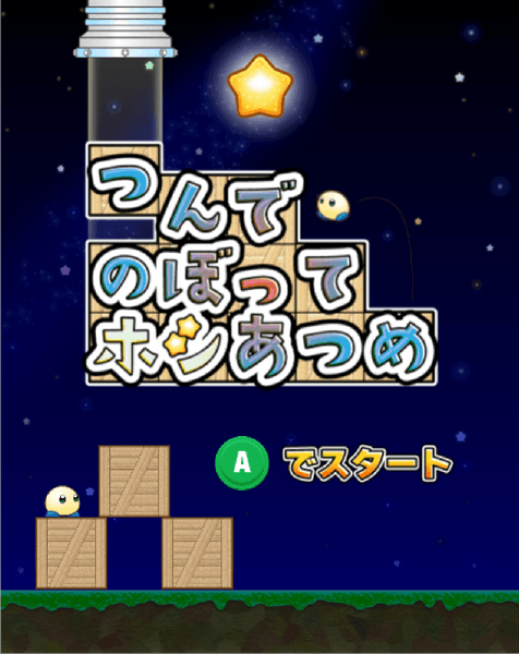 作品概要:ブロックをつんだら、夜空に輝くホシに手が届いちゃった!?うまくブロックをつんで、のぼって、ホシを集めよう!
