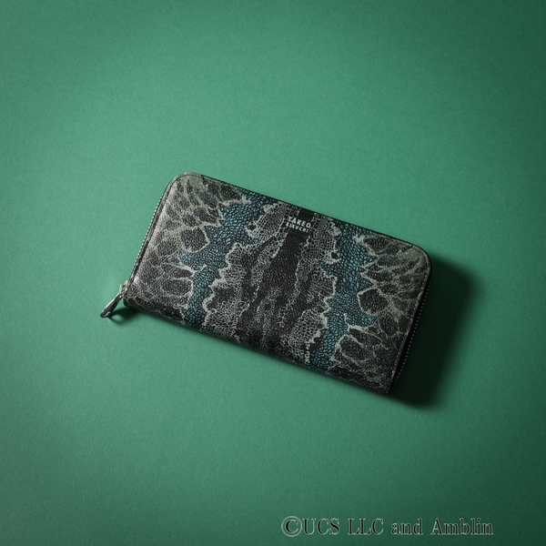 劇中に登場するヴェロキラプトルの「ブルー」をモチーフにした、ラプトルスキン柄のレザーウォレット。ありそうでない色柄と、実用的な内装ポケットで、遊び心のある大人のレザーグッズに仕立てました。