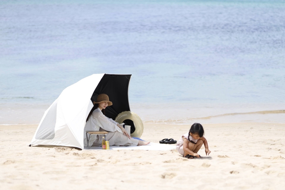 傘のように5秒で開くだけ!簡単設営でママ一人でもできると話題!Vカット率99.9%・体感最大-21℃