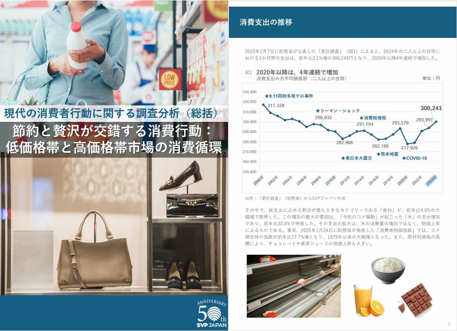 会員制マーケットリサーチサービスを提供している、株式会社SVPジャパン(本社:東京都中央区、代表取締役社長:橋本 雅、以下「SVPジャパン」)は、「現代の消費者行動に関する調査分析」と題して、主要世代の消費者行動のトレンドを把握することを目的に、年2回の定点観測を実施。2024年9月から2025年1月に実施した調査結果に基づき、今回はその総括として、日本における節約と贅沢が交錯する消費行動について言及する。