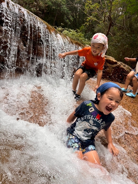 アスファルトの道を歩くことと違い、でこぼこな山道を歩けば、子どもの平衡感覚を刺激し、身心の発達を促します。