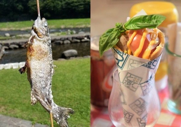 塩原漁業組合による鮎とカジカの塩焼きや、塩原のご当地グルメとて焼の販売のほか、キッチンカーやワークショップ等体験型のブースが源三窟駐車場に並びます。28日に塩原を訪れる方は、是非立ち寄ってみてはいかがでしょうか。
