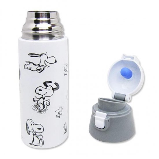 3つ目に紹介するのは、こちらの水筒です。ラフ画のようなスヌーピーとウッドストックがオシャレですよね。