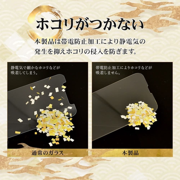 貼り付け作業時に保護ガラスから発生する静電気の発生を抑え埃の侵入を防ぎます。