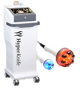 「ハイパーナイフ」とは、温めとほぐしの相乗効果によって固まった脂肪をバターのように溶かしほぐしていく今話題の痩身機器です。バターと同じ性質をもつ体内の脂肪を、温めることで柔らかくし、特殊な形状のハンドピースによってほぐしていきます。