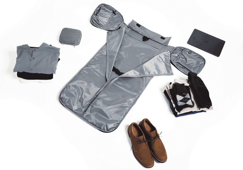 ガーメントバッグ:瞬時に変形する一体型構造。