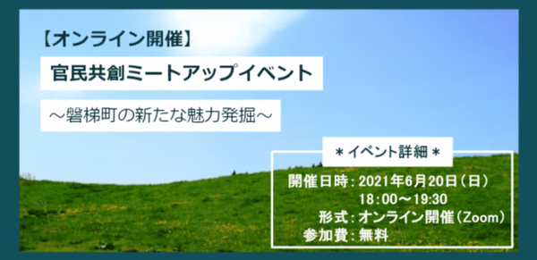 株式会社インターン(本社:東日本橋、代表:半澤洋)は、「官民共創ミートアップイベント~磐梯町の新たな魅力発掘~」を2021年6月20日(日)にオンライン開催します。