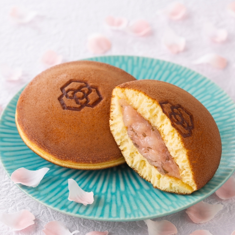 静岡県産大島桜の葉を細かく刻み、白あんにまぜ込みました。かのこ豆の食感も楽しい、桜の香りが口いっぱいに広がる季節限定のどら焼です。