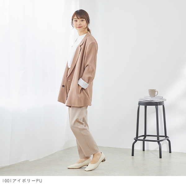 つま先にはステッチを入れてトレンド感をプラスし、Vカットの履き口でスッキリとした印象に!