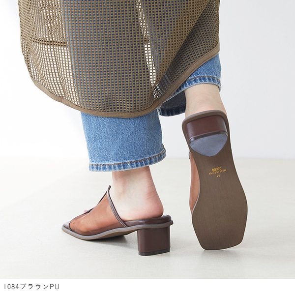 商品名 : menue (メヌエ) スクエアトゥ ラウンドヒール サンダル