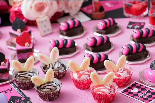 『不思議の国のアリス』の世界を表現 ピンク×ブラックカラーで統一されたユーモアあふれるスイーツ達