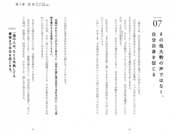 「一流」と聞くと、ハードルが高いように感じますが、じつは一流への道は、誰にでも等しく開かれています。一流の人とは、一握りの特別な人のことではありません。自分の心を磨き続け、自分を信じることができた普通の人のことなのです。