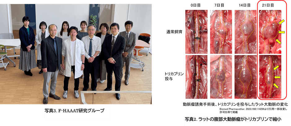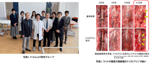 この画期的な発見を基に、大阪大学大学院医学系研究科・中性脂肪学共同研究講座 樺敬人特任研究員(常勤)、平野賢一特任教授(常勤)、同 循環器内科学講座、心臓血管外科学講座、放射線統合医学講座の研究グループは、【腹部大動脈瘤患者に対する世界初のトリカプリン投与試験:F-HAAAT試験】を開始しました(臨床研究等提出・公開システム(niph.go.jp))。