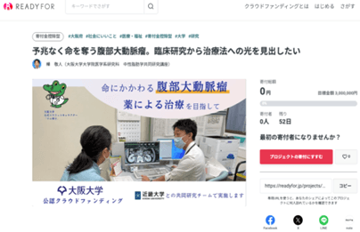(1)READYFOR腹部大動脈瘤の治療薬創出を目指して!クラウドファンディング
