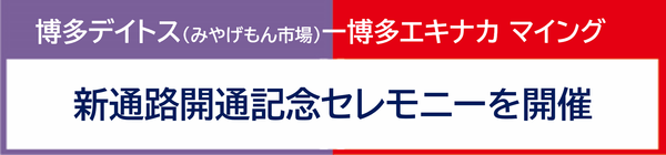 2025年4月18日(金)、JR博多駅内の商業施設「マイング」と「博多デイトス」みやげもん市場との間に新通路が開通いたします。それを記念して弊社博多ステーションビルは、株式会社JR博多シティと共同で新通路開通記念セレモニーを開催いたします。