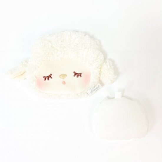 ねむねむアニマルズのキャラクター、ひつじのメイプルのアイウォーマーです。ほんのりサクラ色のサクラが、すやすやと眠っているぬいぐるみのようなフォルム。ふわふわな毛並みが、気持ちよさそうですよね。