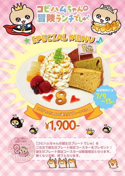 また、7月9日(水)~7月13日(日)限定でコビハムちゃんの誕生日をお祝いするイベントも開催します。