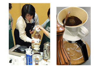 実演 ペーパードリップ式の入れ方、ご参加者実習体験