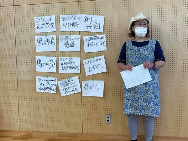 地方創生として重点的に取り組んでいる「もっと自分らしく輝くiママ事業」(子育て世代が仕事と子育ての両立が叶うように地域のなかや子どもたちの近くで働ける環境の整備する)や「飯綱いきがい創造プロジェクト事業」(テレワークの実践やIT活用などでさまざまな世代の就労機会を創出する)について発表しました。