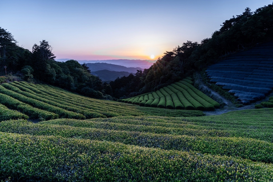 かつて、俗世の喧騒を背にし修行の地として山々へと向かった僧侶たちのように、茶の木もまた聖なる地を求めたのだろうか。由緒正しい寺院が点在する「山城」は、山岳修験の拠点として、自然の美しさと厳しさを併せ持つ静謐な場所。土地の気質である寒暖差、水捌け、そして木津川の川霧、これらが宇治茶の生育に寄与し、その結晶として優雅な風味が生まれたのです。