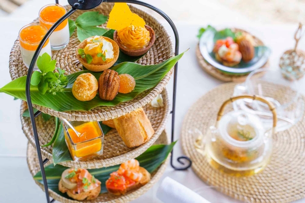 沖縄で親しまれている「にーぶい草」は、眠れない時に煎じて飲まれていたといわれる命草(ぬちぐさ)*2です。にーぶい草のハーブティーに加え、タルティーヌやブランマンジェ、シュークリームにもにーぶい草を混ぜ込んだ、まどろみを誘う「にーぶいアフタヌーンティー」を東屋で提供します。ハーブティーに使用するにーぶい草を中心とした命草やハーブは、施設内の畑で自ら収穫します。開放的で日当たりが良い東屋で、華やぐハーブの香りに癒される時間です。