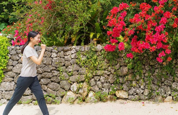 パワーウォークとは、腕を大きくスイングしながら、足裏でしっかりと地面を踏み、体全体を使って早足で歩く健康法の一つです。この健康法と、鼻から吸って口から吐く深い呼吸を組み合わせ、全身に酸素を巡らせます。朝日が昇る頃は、日帰り観光客が少なく、穏やかな島風を感じながら歩くことができる時間帯です。星のや竹富島から出発し、沖縄の原風景が残る街並みを眺めながら全身を使って歩くことで、その後の快眠に導くための適度な疲労を体に与えます。
