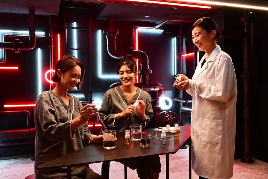 到着初日は、「海地獄」や「血の池地獄」などの別府地獄めぐりがおすすめです。日本一の源泉数・湧出量を誇る別府温泉での観光を楽しんだ後は、別府湾に面した界 別府へ。チェックイン後は、温泉の泉質や入浴法を伝授される「温泉いろは」では、源泉とアロマオイルを使った「温泉ミスト作り」を行います。大地の恵みである温泉を使った「温泉ミスト」は、旅のお供に持ち帰ることもできます。