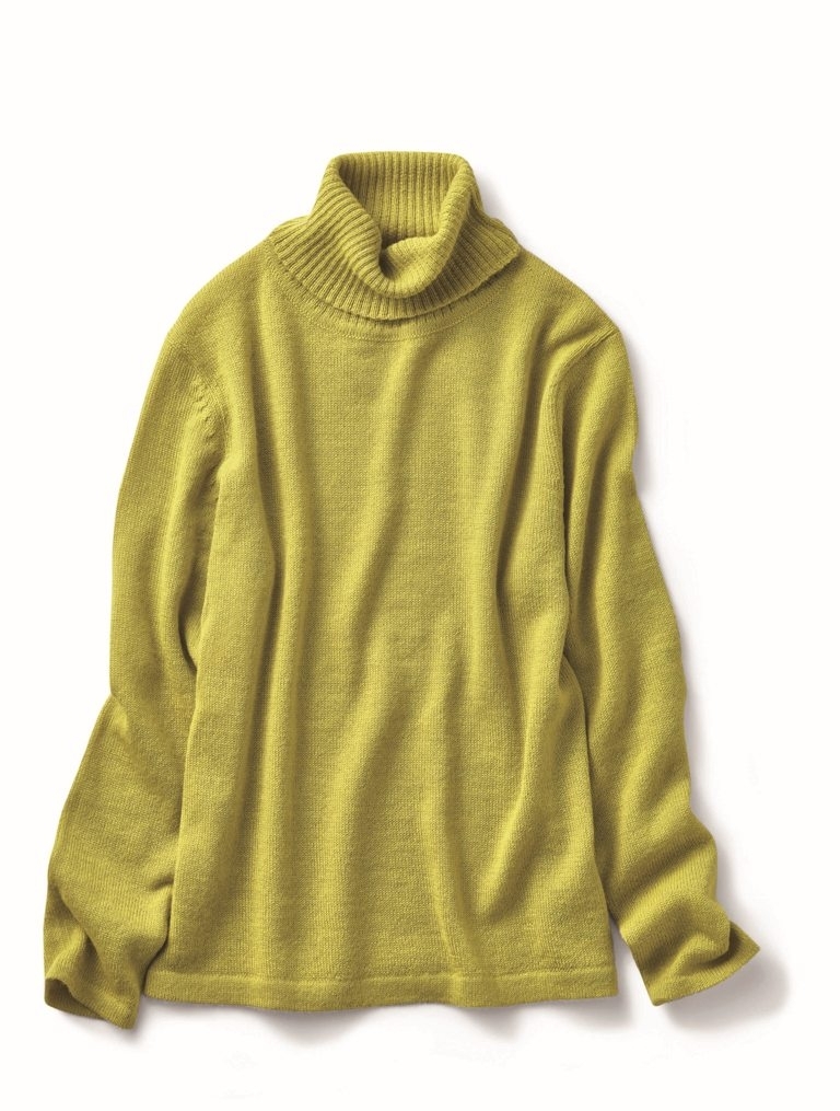 一枚でも、重ね着のアクセントにも、さまざまに使えるシンプルさが魅力のニット。カラーバリエーションを豊富に、この冬の注目色である、ラズベリーローズ、ライムイエローを展開。