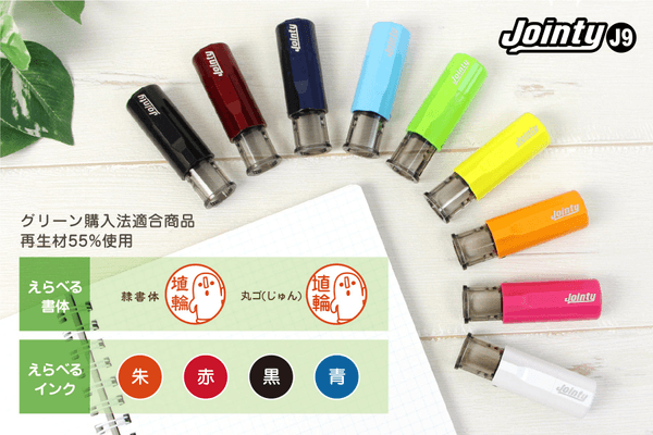 えらべる楽しさと便利さをかなえる全9色のボディカラー。用途や印面のデザインごとに色をかえたり、ご家族それぞれで色分けをすることもできます。