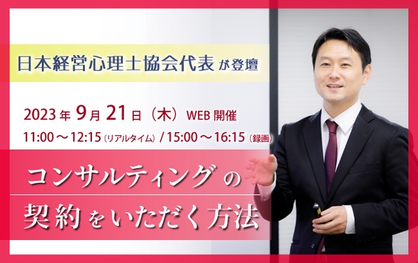 みらいコンサルティンググループ(本社:東京都中央区、代表:久保 光雄 岡⽥ 烈司)は、セミナー『コンサルティングの契約をいただく方法』を2023年9月21日にWEBにて開催いたします。