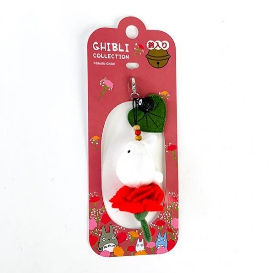 大きなトトロがカーネーションの上に乗った、キュートなストラップが入荷しました。母の日にピッタリなアイテムで、とってもかわいいストラップです。上部にはまっくろくろすけのチャームも付いていて、中には鈴も入っているんです。