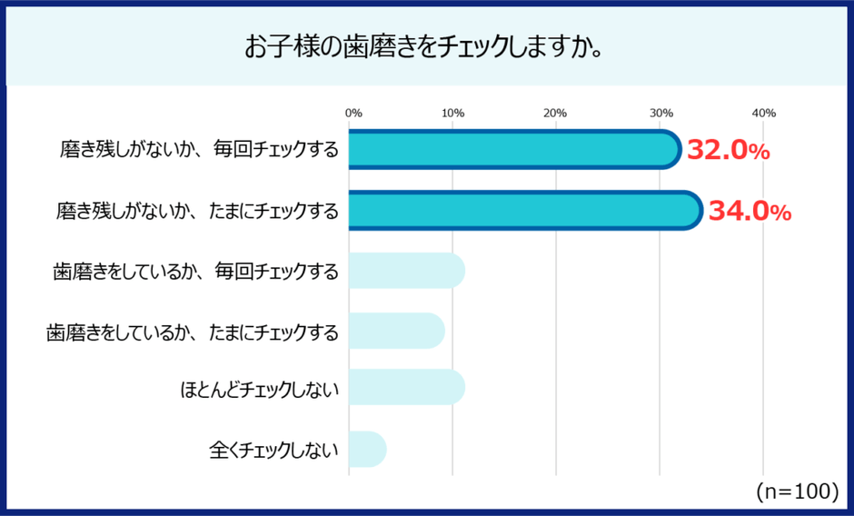 保護者は子どもの歯磨きに対して、どのように関わっているのでしょうか? 「お子さまの歯磨きをチェックしますか」のアンケート結果から見ていきましょう。