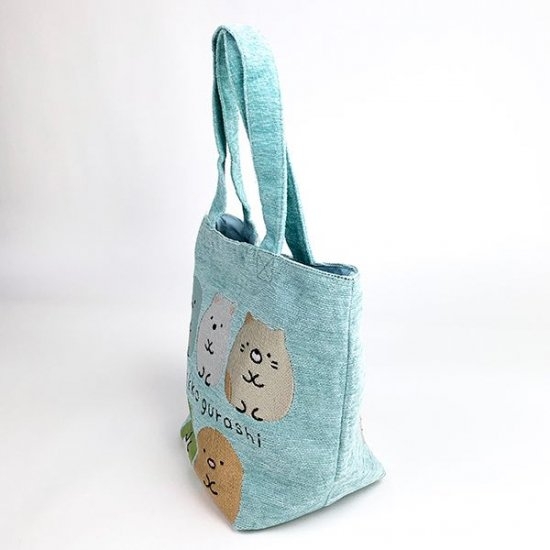 ブルーの布地にすみっコたちが並んでいる、かわいいデザインが魅力♡