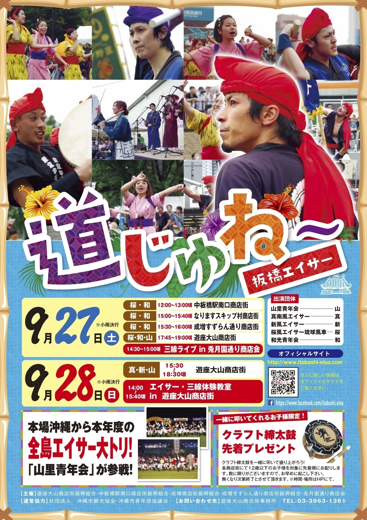 2014年9月22日 09:30遊座大山商店街振興組合(所在地:東京都板橋区、理事長:松田 隆至)は、沖縄の伝統芸能エイサーを鑑賞できるイベント「2014 板橋エイサー 道じゅね~」を9月27日(土)、28(日)に東京・板橋区の5商店街にて開催致します。