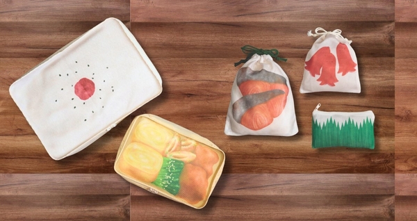 お弁当の具材をプリントしたポーチは、開けた瞬間に「なにこれ!」と