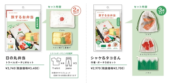株式会社パイン・クリエイトが展開するトラベルグッズ【旅するお弁当】シリーズから、“日の丸弁当”と“オムライス弁当”をモチーフにしたポーチセットが新登場しました!