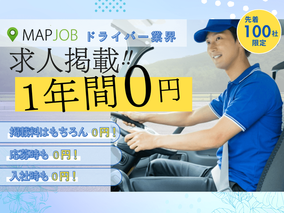 マイスター株式会社は、物流・タクシー・バス業界のドライバー採用の深刻な人材不足問題に対応するため、地図から探せる求人サイト「MAPJOB」への求人掲載を1年間完全無料で利用できるキャンペーンを、先着100社限定で開始いたします。