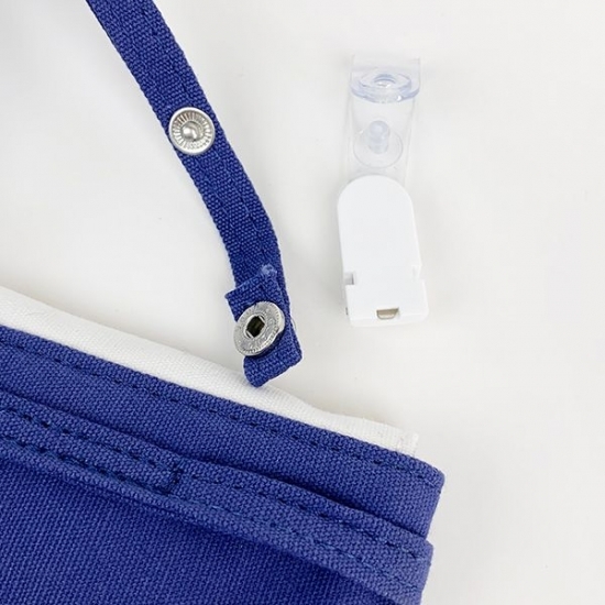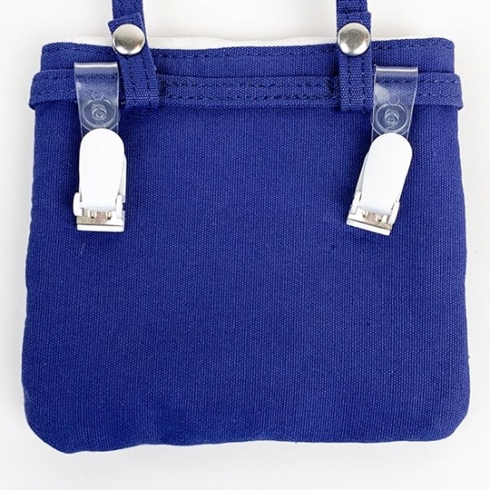 裏側を見ると、ピンチが付いていますよね。ショルダー部分を外し、このピンチをボトムに挟めばウエストポーチ代わりになるんです。薄いので、大きなポケットのような感覚で使えちゃいます。