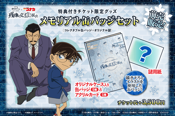 『残像の交信からの脱出』では、通常のチケットに加え、描き下ろしイラストを使用した限定グッズ「メモリアル缶バッジセット」と、自宅で楽しめるおまけ謎がセットになった「特典付きチケット」も販売。