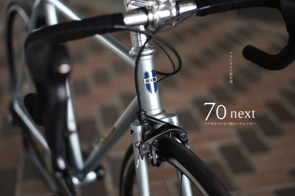 ビルダー片岡聖登がこれまで培った技術の粋を集め、新たに開発したクロモリ製ロードバイク「70next」。VIGOREで70年代から受け継がれるラグ溶接を採用したデザイン設計をベースに、最新のクロモリ素材とコンポーネントパーツで、レーサーの走行感を最大限に引き出しました。片岡の手でひとつひとつ製作し、次のメッセージを込めました。