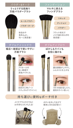 フェリセラテノンの特徴は、今の流行メイクに合う、しっかりと発色させるだけではなく、形状にこだわることで綺麗にぼかすことができるなど、テクニックなしで思いのままメイクができるということです。ファンデーションブラシ、パウダー・チークブラシ、アイシャドウブラシ、アイブロウブラシ、ポーチの5点セットを発売致します。