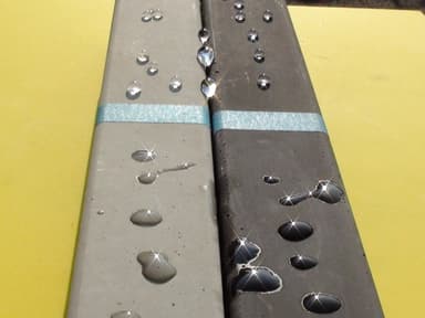 「サーファポア」は、ホルムアルデヒド等の有害物質を含まない水性の材料です。また、溶剤系シランやシロキサン等の有機系材料を使用していない環境に配慮した無機系保護材です。