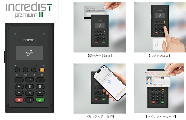 Incredist Premium シリーズ*1は、キャッシュレス決済に加え、マイナンバーカードの読み取り機能を兼ね備えた多機能型端末です。本端末の導入で、国内で加速するキャッシュレス決済の普及への対応だけでなく、マイナンバーカードを用いた厳格な本人確認などの市場ニーズに柔軟に対応できるようになります。複数の端末を用意する必要がなく、省スペースで効率的な運用を実現するため、今後の需要拡大が見込まれている製品です。