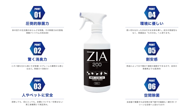 ZIAは「除菌力」「消臭力」「安全性」「利便性」など、今までの除菌消臭剤の常識を覆す圧倒的パワー!!