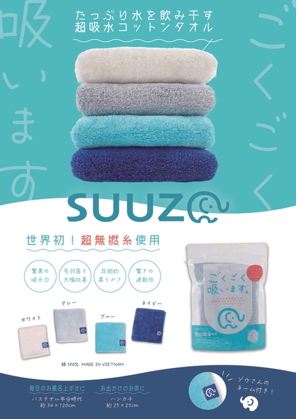 野村タオル株式会社(本社所在地:愛知県清須市、代表取締役社長:野村佳弘)は、従来のタオルの常識を覆し、「洗うほどふっくら感が持続する」技術と「従来品比5倍の吸水力」を持つ新商品『SUUZO(スウゾー)』を発表しました。