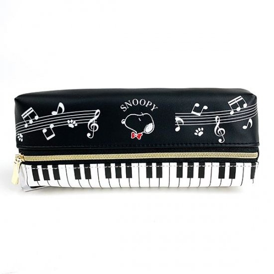 今日は、スヌーピーのミュージックデザインのペンポーチをご案内します。ピアノの鍵盤がデザインされていて、ピアノを弾くスヌーピーや散りばめられた音符がオシャレなケース。しかも、収納箇所が2ヵ所に分かれているので、収納力もあって整理しやすいんです。