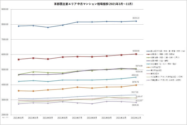 ■主要エリア 中古マンション相場推移(2021年3月~11月)