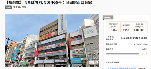 不動産投資型クラウドファンディング「ぽちぽちFUNDING」5号募集達成(245%)