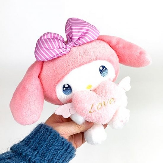 思わずキュン♡としてしまうかわいさの、シナモロールのぬいぐるみです。ふわふわな手触りで、羽付きのハートを抱えているキューピードシリーズ。おめめもブルーのグラデーションになっていて、いつもよりラブリー度がアップしています。